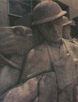 It's a huge edifice, built in 1930s deco style, with large, life-size reliefs of war carnage on either side of the entrance and enormous metal doors with their own reliefs set in individual panels. The brochure explains that represented on the doors are "implements of war from the Greek shield and sword of 400 B. C. to the American bomber and battleship of 1940." One panel, for example, is a big cannon identified only as "Whistling Dick, Vicksburg '63."