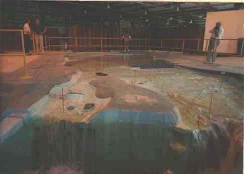 From there I continued to Vicksburg, MS, where I found the Army Corps of Engineers' Waterways Experimental Station. At the WES they create large models of riverways and bays in order to test out new jetties and levees and stuff. One model can cover an entire acre or more. 'Course a lot of this work is now taken over by computer modeling with their new Cray supercomputer, but apparently there's nothing like building a concrete model of the Long Beach Harbor, say, for real accuracy.