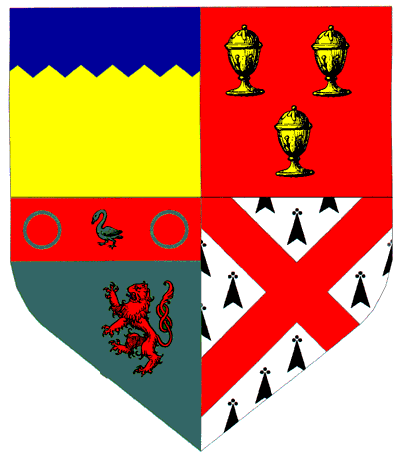 | 3rd | Vert, on a Chief Gules, two Annulets Vert, a Swan Vert, a Lion Rampant Gules, Langued Azure |