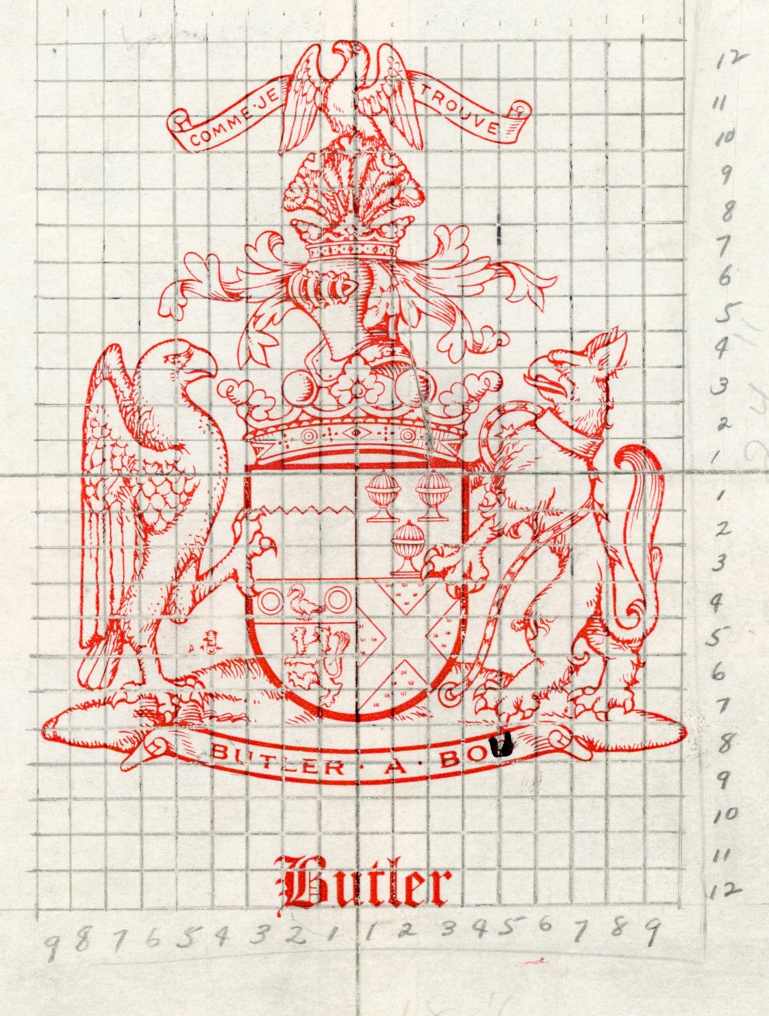 "Comme je trouve," a second phrase associated with the Butler coat of arms, translates from the French as "As I find." Perhaps the ancient Butlers were seekers (of truth?).