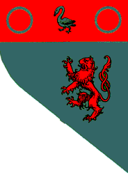 | 3rd | A green background with red above; on the top are two green rings ("annulets") and a green swan; on the bottom is a red lion, rising up ("rampant"), with a blue ("langued") tongue | |